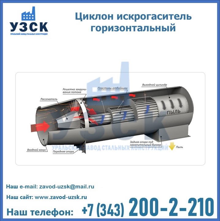 Горизонтальные циклоны-искрогасители ЦГ поставляются в Сарани в сборке или же транспортными единицами для последующей сборки, если предназначены для работы с большими объемами.
