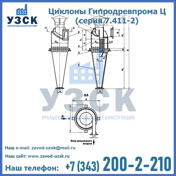 Циклоны Гипродревпрома Ц (серия 7.411-2) высокого качества можно купить в компании «УЗСК» в Сарани. Наши специалисты предоставят всю необходимую информацию информацию и помогут с выбором модели циклона. Подробные технические характеристики, конструкцию, параметры, ассортимент и стоимость продукции можно также найти на сайте УЗСК.