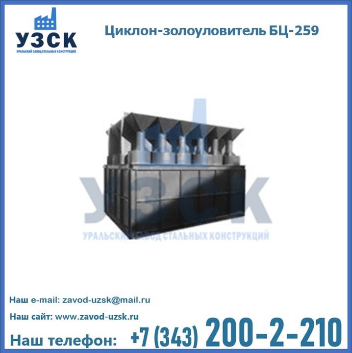 Если вы планируете купить то или иное оборудование, например, циклоны-золоуловители БЦ-259, то рекомендуем заказать данный товар на сайте УЗСК. Мы производим и реализуем продукцию высокого качества по приемлемой цене. Эксперты Уральского Завода Стальных Конструкций в Сарани проконсультируют вас по всем вопросам, помогут сделать выбор и оформить заказ без лишних временных затрат. Мы гарантируем соответствие нашей продукции всем требованиям ГОСТ и ТУ, а также износостойкость и высокую производительность предлагаемого оборудования. Если требуется изготовить циклон нестандартных размеров, то такой вариант выполнения заказа тоже предусмотрен, так как предприятие имеет собственные производственные площади и надежных поставщиков. На все поставляемое или производимое оборудование имеются чертежи и прочая техническая документация. Заказать и купить циклоны или прочее оборудование высокого качества и по доступной цене можно через наш сайт или по указанному в разделе «Контакты» телефону.