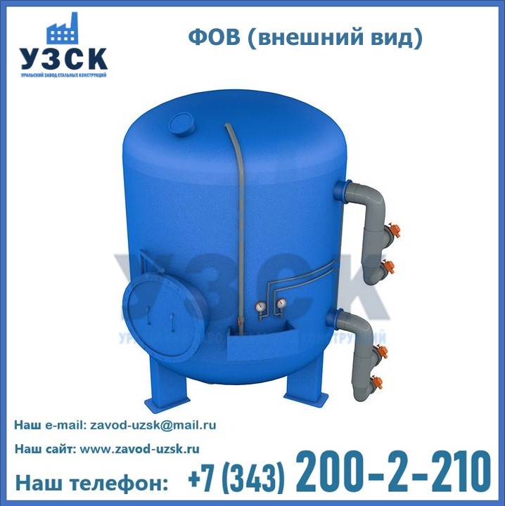 Удаление взвешенных веществ различного уровня дисперсности из рабочих жидкостей эффективно проводит фильтр осветлительный типа ФОВ (скорый или механический) — вертикально-цилиндрической формы установка, разработанная для систем водоподготовки различного класса. Оборудование представляет собой однокамерный агрегат для очистки воды рекомендованный для применения на станциях очистки стоков, в коммунальных котельных, на ТЭЦ, в промышленных отопительных системах и пр. Заказать производство ФОВ фильтров предлагает наш Уральский завод стальных конструкций в Сарани. У нас можно купить фильтрационное оборудование различного класса и типа, в том числе фильтры ФОВ из нержавеющей стали.